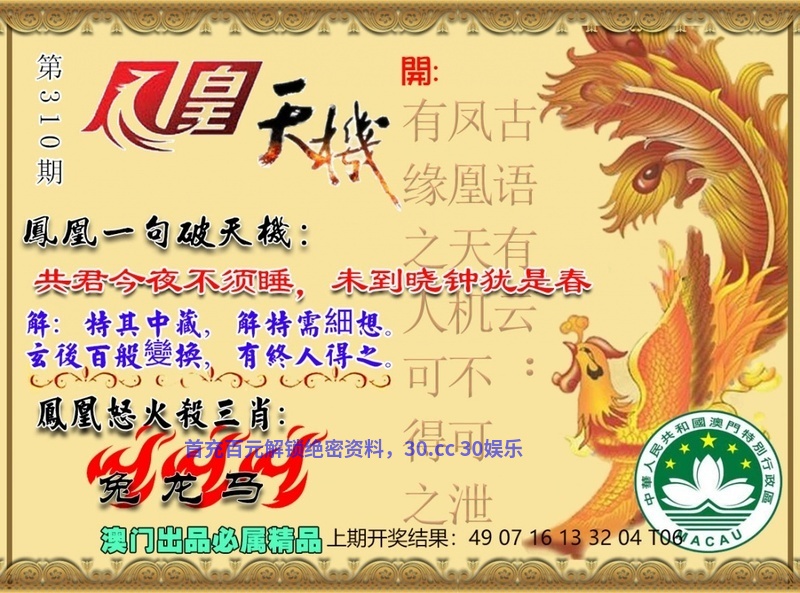 312期:凤凰一句破天机:三羊开泰旧年事,自知今春又一期